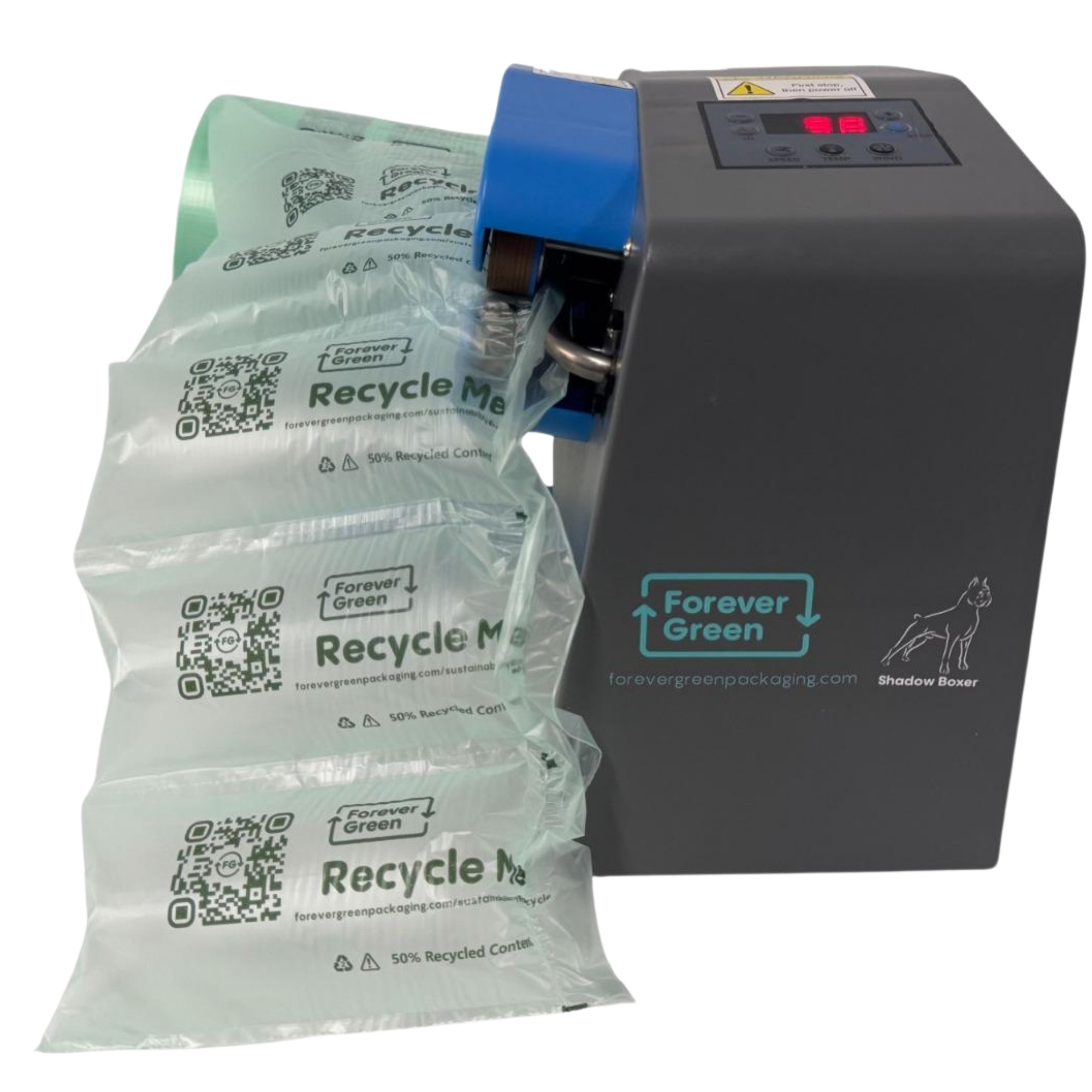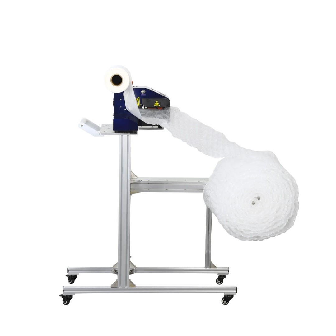 An air cushion machine is a compact desktop device that inflates rolls of flat film into protective air-filled cushions, bubble wrap or tubes. You load a roll of film, plug it in, and it produces packaging on demand meaning you only make what you need for each parcel. Our machines are plug-and-play, require no training, and come with a warranty and spare wearable parts.